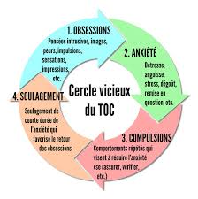 Les symptômes du trouble obsessionnel compulsif suivent un schéma ou un cycle . Tout d’abord, la personne éprouve des pensées intrusives ou des obsessions à propos de certaines choses qui provoquent de l’anxiété. Les types courants de TOC se concentrent sur la peur des germes ou de la contamination, le perfectionnisme, le fait de se faire du mal ou de faire du mal aux autres , et la peur de la trahison ou de l’abandon dans les relations .
